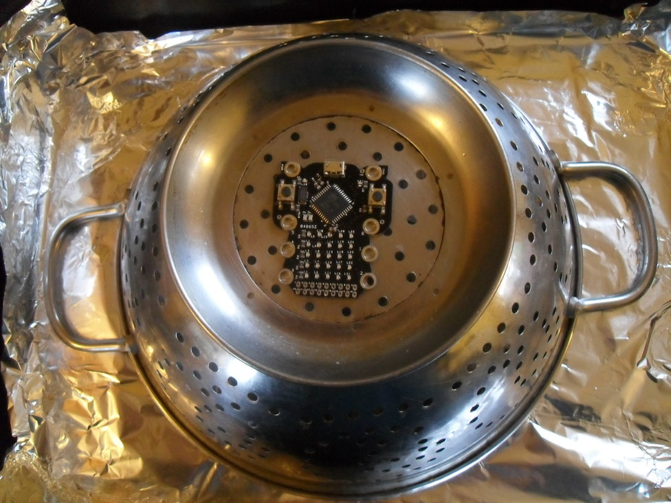 - Getting a first board created by DF Robot, flow soldering in the kitchen